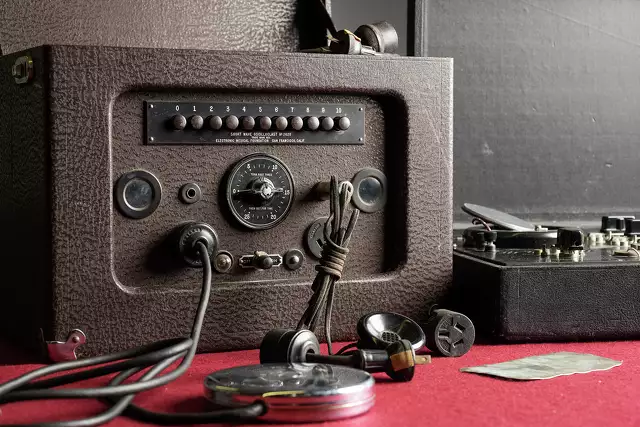 Short wave oscilloclast from the Electronic Medical Foundation and the standard diagnostic set from the College of Electronic Medicine created by Dr. Albert Abrams in San Francisco at the Museum of American Heritage in San Carlos, Calif., Oct. 18, 2023. Lance Yamamoto/SFGATE